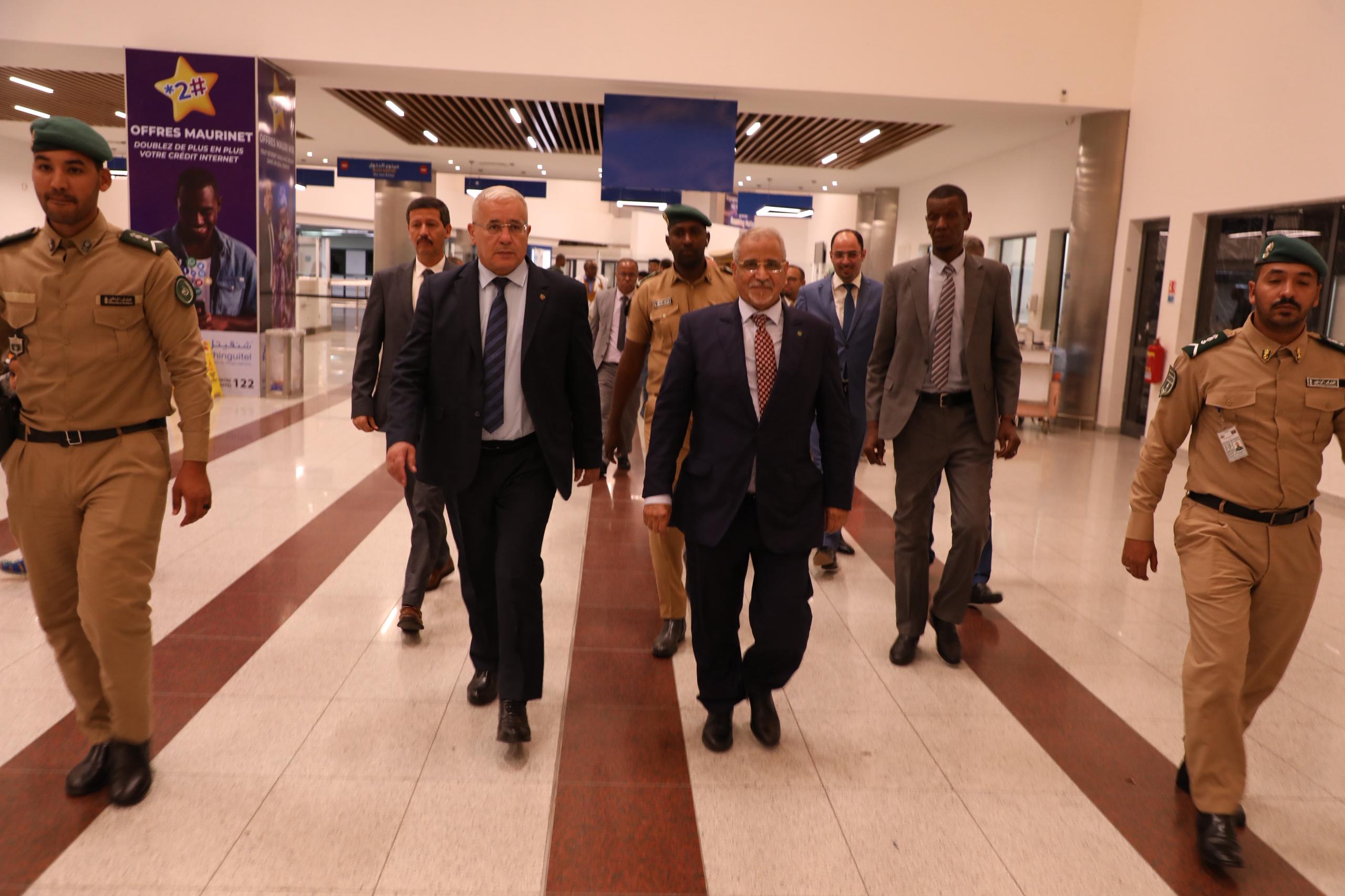 واستُقبِل رئيس البرلمان الجزائري في مطار نواكشوط الدولي من طرف نظيره الموريتاني محمد ولد مكت.