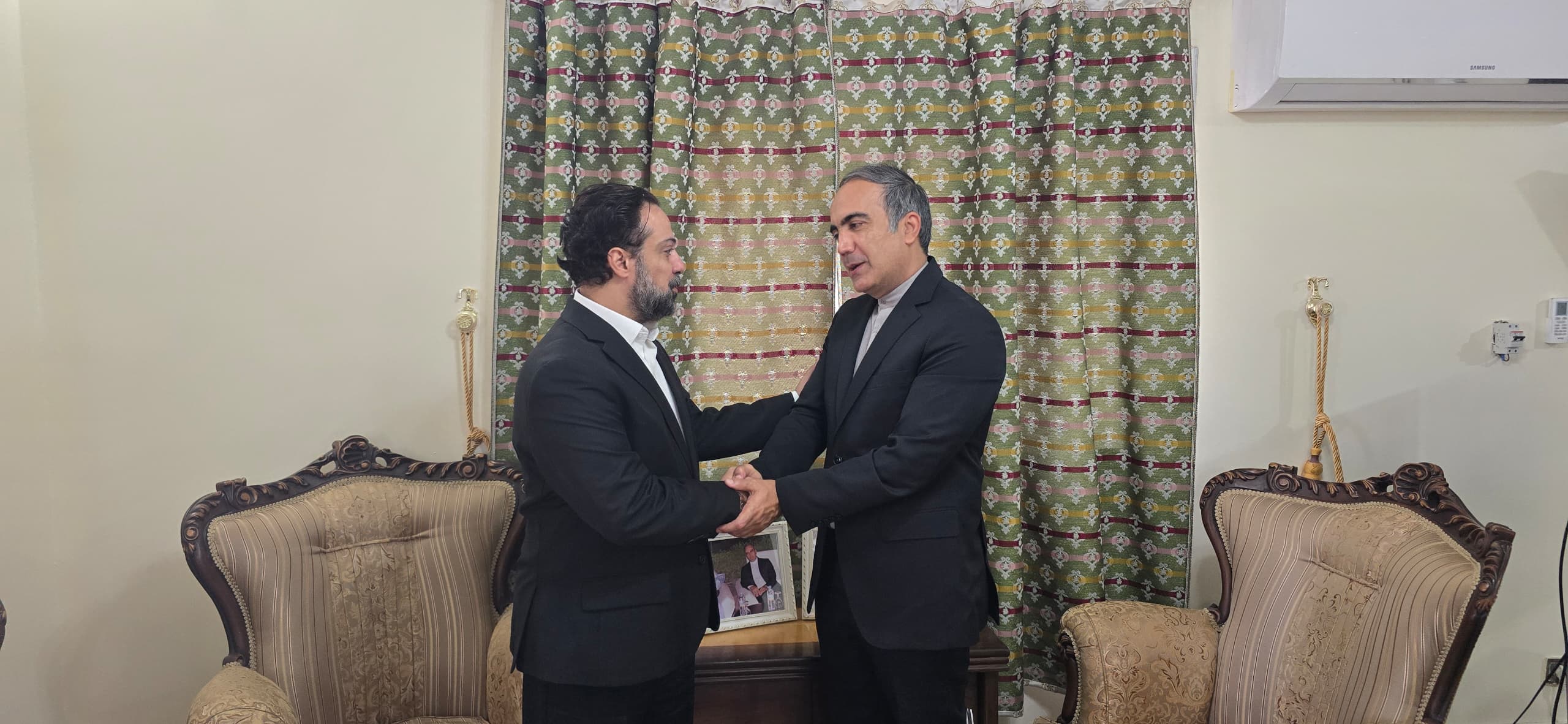 الأخبار (نواكشوط) – أدى ممثل حركة المقاومة الإسلامية “حماس” في موريتانيا الدكتور محمد صبحي أبو صقر اليوم الثلاثاء زيارة للسفير الإيراني في مويتانيا جواد أبو هنأه خلالها وهنّأ الجمهورية الإسلامية الإيرانية على الانتصار النوعي الذي حققته في الرد على العدوان الصهيوني.
