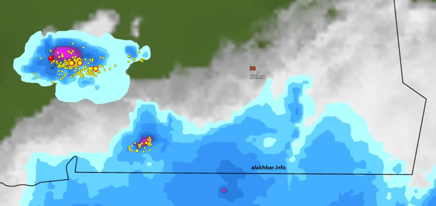 وبدأت سحب ماطرة خفيفة إلى غزيرة واسعة الانتشار تتكون منذ ظهر اليوم الأحد على الحدود الموريتانية المالية، وخصوصا على الجانب المالي، قبل أن تبدأ التحرك ببطء داخل الأراضي الموريتانية مع مغرب اليوم.