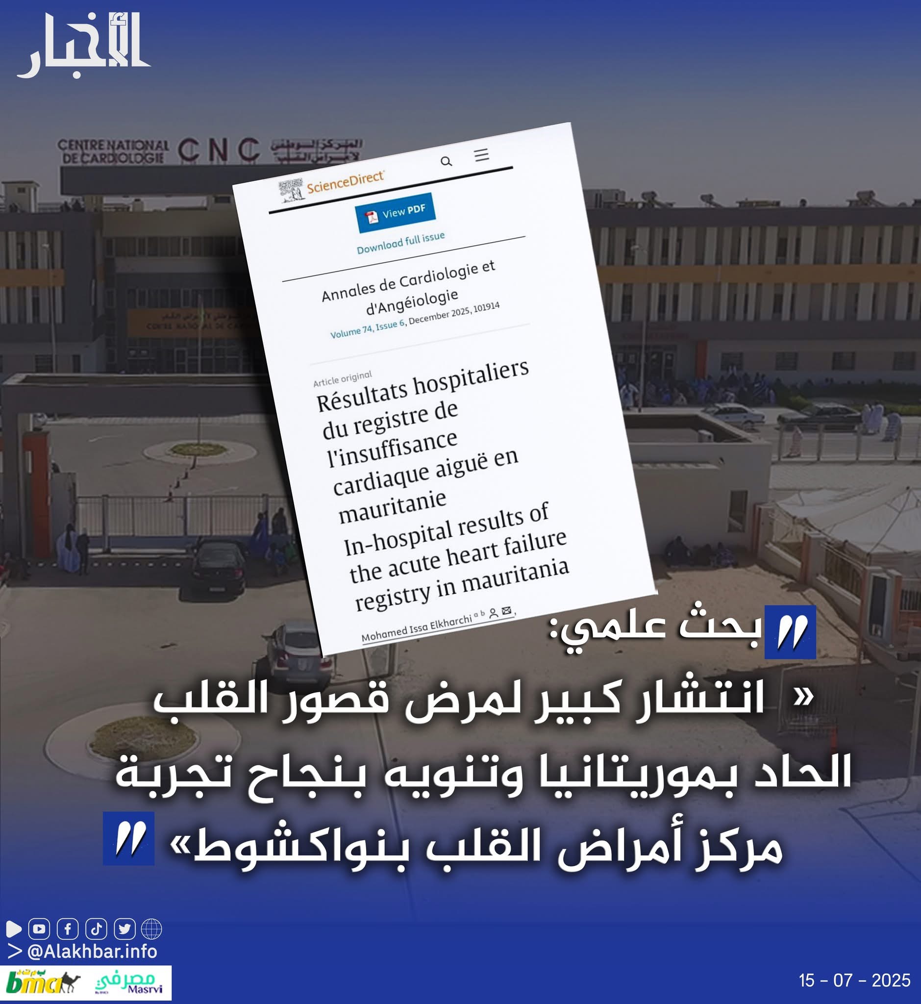الأخبار (نواكشوط) – كشف بحث علمي انتشار مرض قصور القلب الحاد بكثرة في موريتانيا، فيما نوه الفريق الذي أعده بنجاح تجربة المركز الوطني لأمراض القلب بنواكشوط في علاجه.