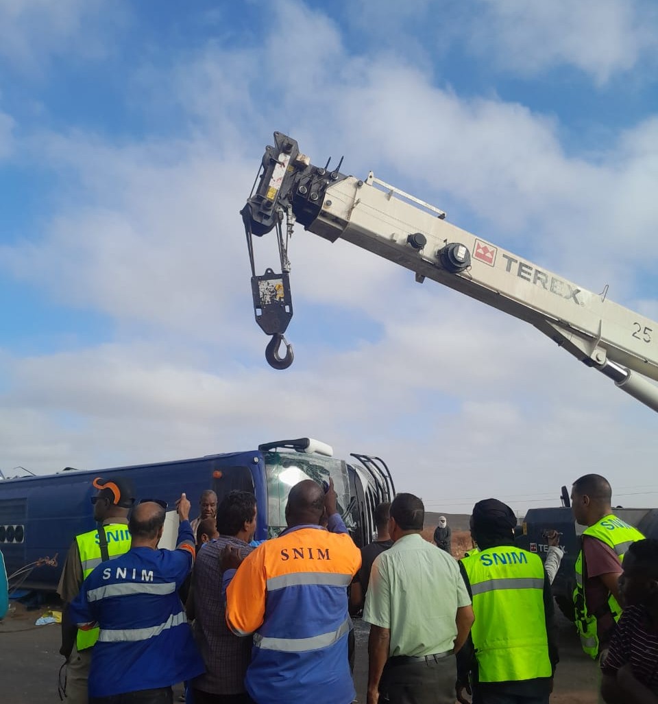واصطدم قطار نقل خامات الحديد التابع لشركة (سنيم) صباح اليوم الخميس، بحافلة نقل ركاب قرب مدينة الزويرات.