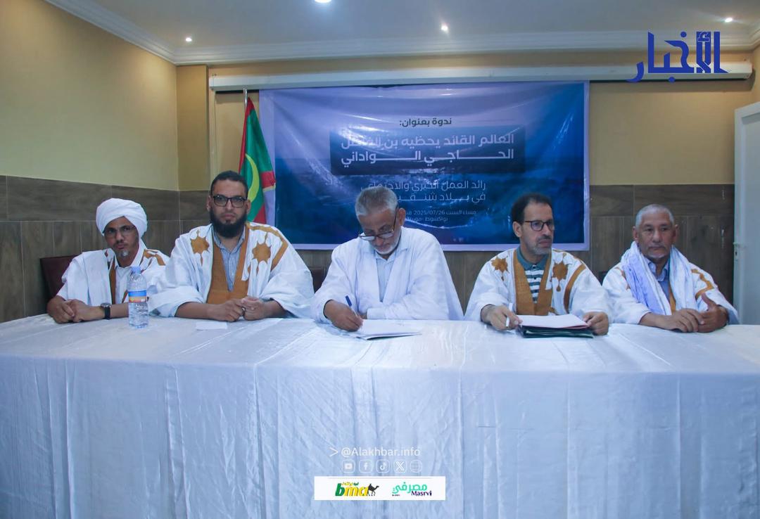 الأخبار (نواكشوط) – نظم عدد من الأساتذة والباحثين مساء أمس السبت ندوة علمية بنواكشوط تحت عنوان: “العالم الموريتاني يحظيه بن فاضل الحاجي الواداني رائد العمل الخيري والاجتماعي في بلاد شنقيط”.
