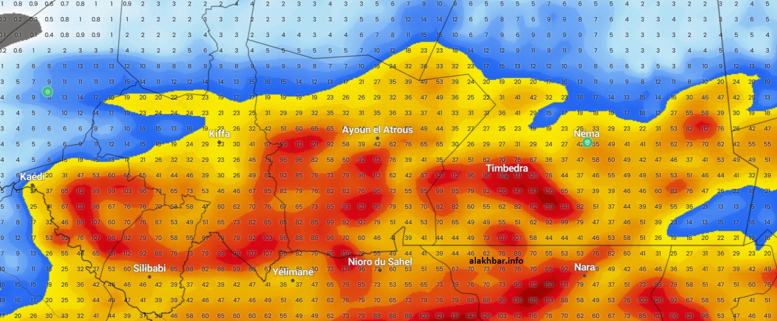 الأخبار (نواكشوط) – يتوقع بحول الله تعالى أن يعرف الأسبوع الأول من شهر أغسطس المقبل موجات أمطار متتالية على عدة ولايات، وذلك بعد انقشاع شبه كامل للسحب من أجواء البلاد، عدى استثناءات قليلة على شمال البلد، أقصى شمال تيرس الزمور، وأقصى شمال شرق آدرار.