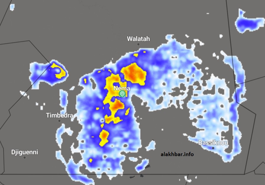 ويتوقع تكون سحب جديدة على الحوض الغربي خلال الساعتين القادمتين، وأخرى على جنوب غرب البلاد، جنوب غرب ولاية الترارزة، ستتحرك باتجاه الشمال، نحو وسط وشمال الولاية.