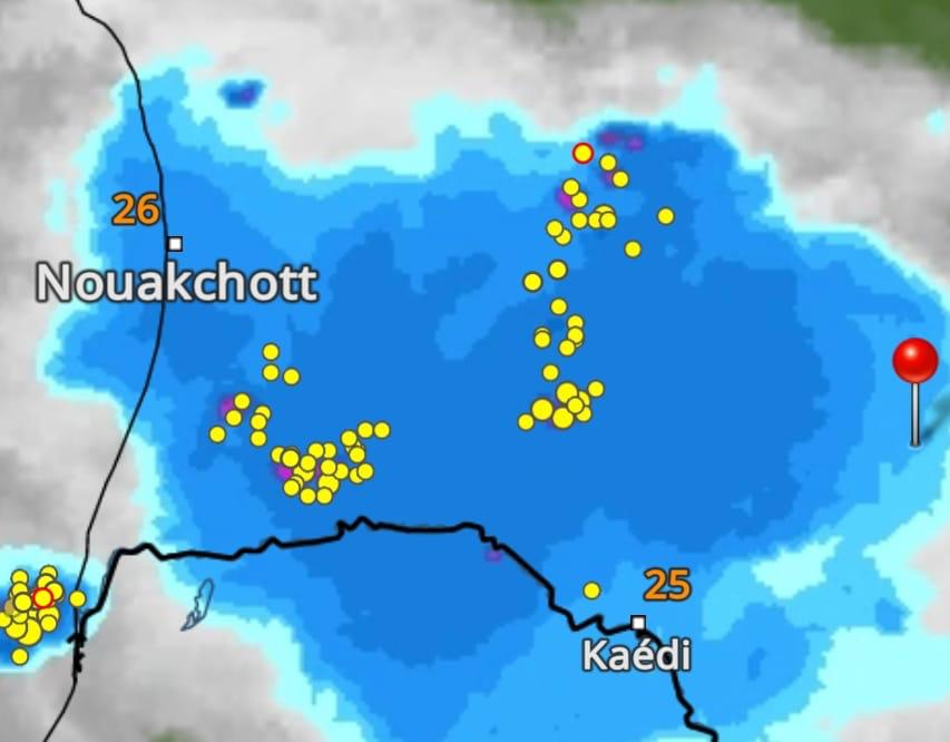 ويتوقع بحول الله تعالى أن يتواصل تهاطل الأمطار الخفيفة إلى المتوسطة على كامل البراكنة وعلى جل ولاية الترارزة، وذلك حتى الساعة التاسعة والنصف تقريبا.