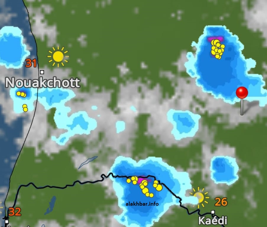 الأخبار (نواكشوط) – تشير آخر معطيات الطقس في أجواء موريتانيا ومحيطها إلى انتشار سحب ماطرة على تقاطع ولايتي تكانت والبراكنة، فيما توجد سحب ماطرة أخرى على خط النهر، وسحب ثالثة على الترارزة جنوب نواكشوط.