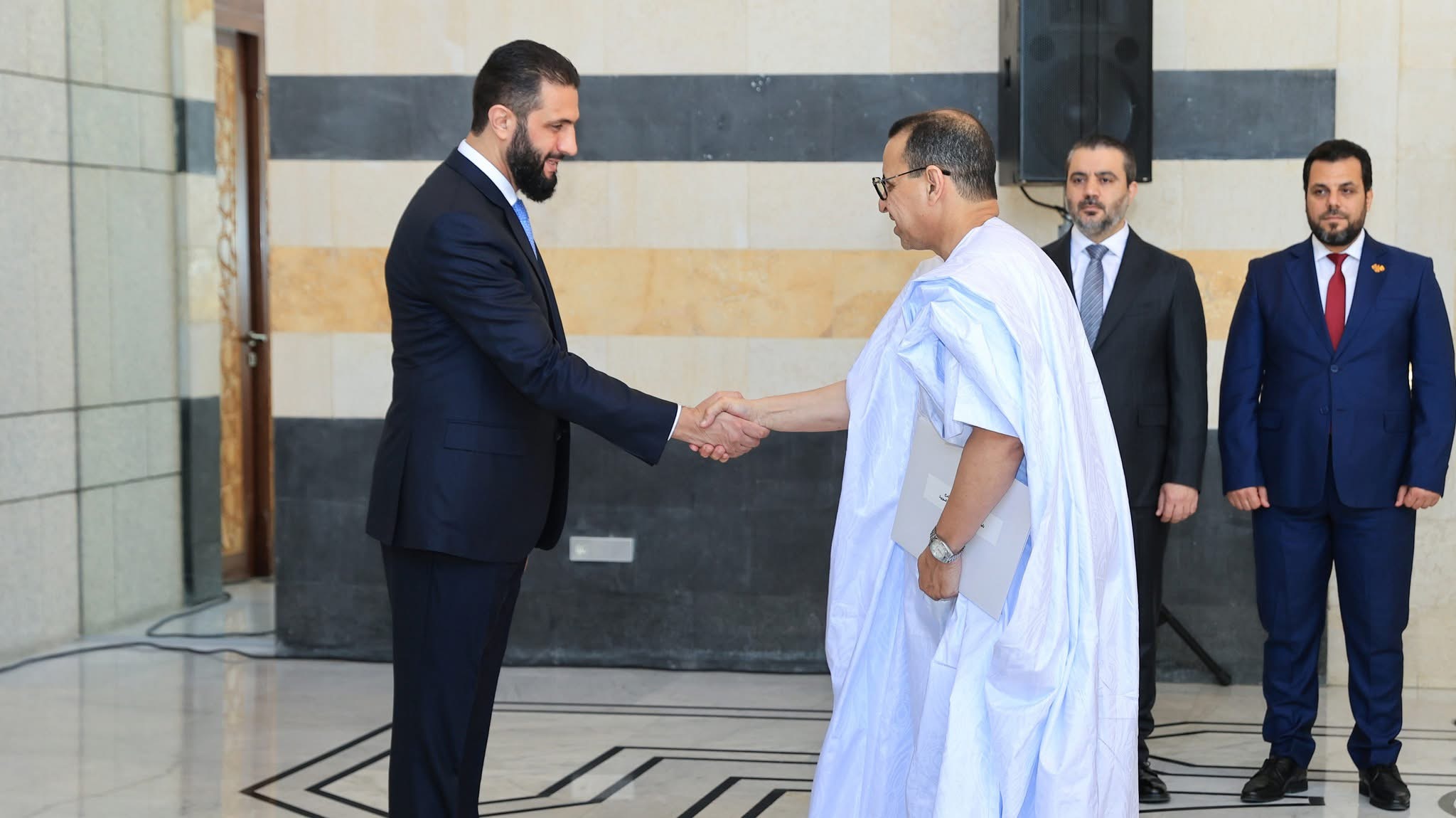 الأخبار (نواكشوط) – تسلم الرئيس السوري، أحمد الشرع أوراق اعتماد السفير الموريتاني الجديد الطالب المختار الشيخ محمد المجتبى.