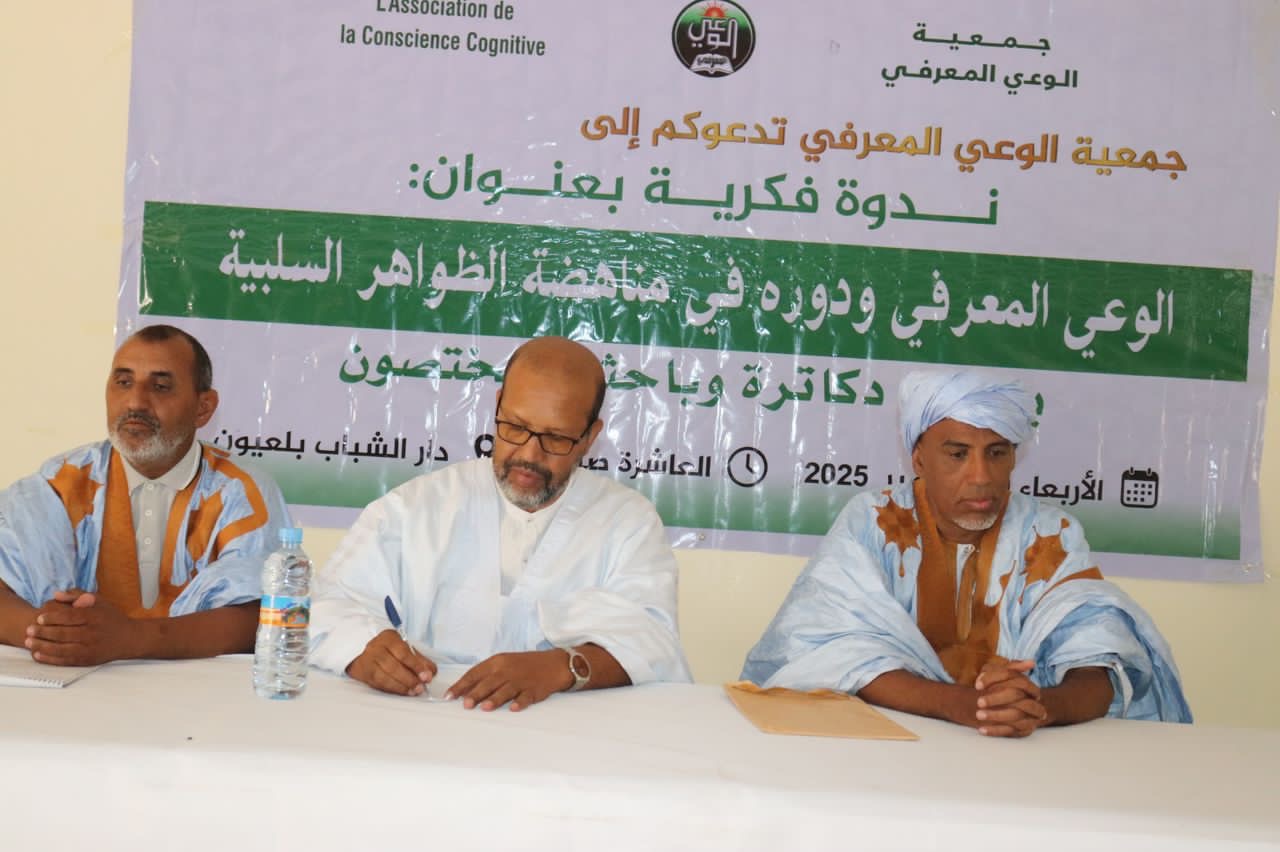 الأخبار (نواكشوط) – نظمت جمعية الوعي المعرفي أمس الأربعاء بعاصمة ولاية الحوض الغربي العيون ندوة عن “الوعي المعرفي ودوره في مناهضة الظواهر السلبية”.