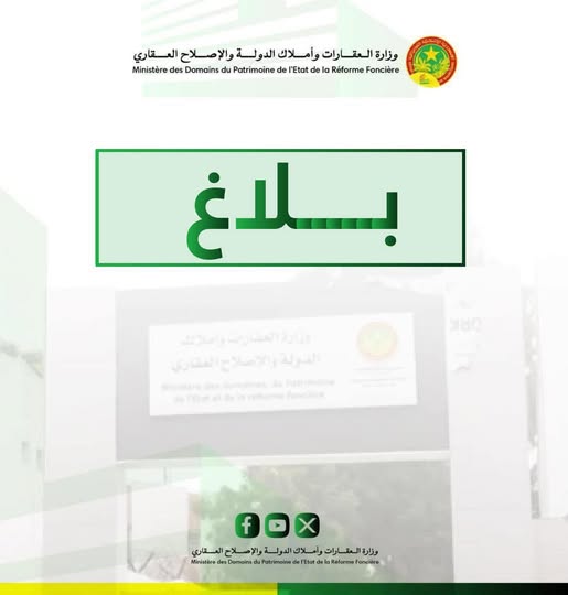 الأخبار (نواكشوط) – أعلنت وزارة العقارات وأملاك الدولة والإصلاح العقاري عن فتح شباك خاص لاستقبال الملفات على مستوى مكتب إدارة العقارات والتسجيل بمقاطعة تيارت، وذلك للتحقق من صحة وثائق عقارية متعلقة بأحياء متعددة.