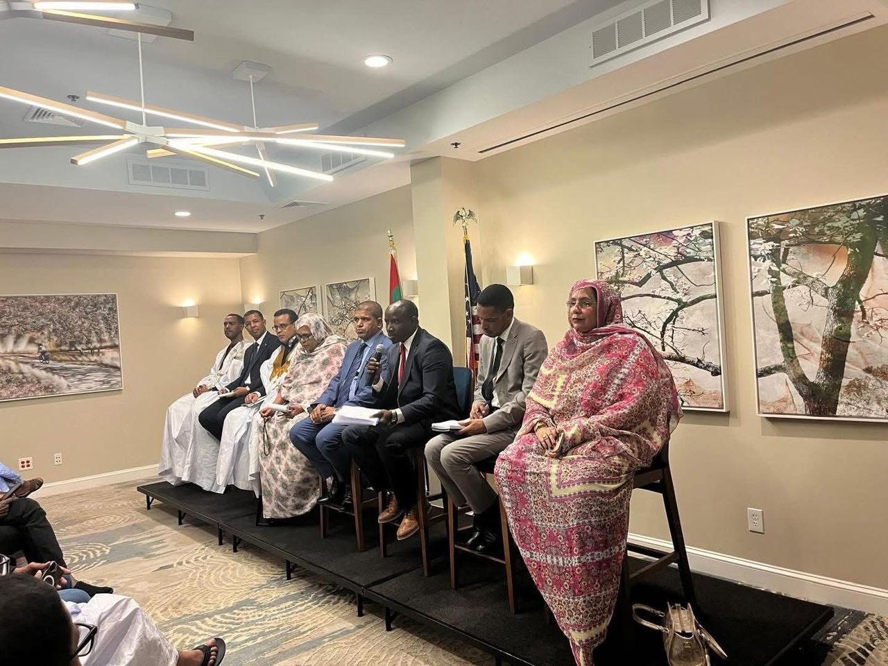 سفيرة موريتانيا في واشنطن سيسه بنت الشيخ ولد بيدة رحبت بأعضاء البعثة الذين قدموا للولايات المتحدة من أجل اللقاء بالجالية عن قرب والاستماع لها ولمطالبها وانشغالاتها، وكذلك لاطلاعها على الخطوات التي تم قطعها في سياق التحضير لمنتدى الجاليات الموريتانية الذي تعمل الوزارة على تنظيمه.