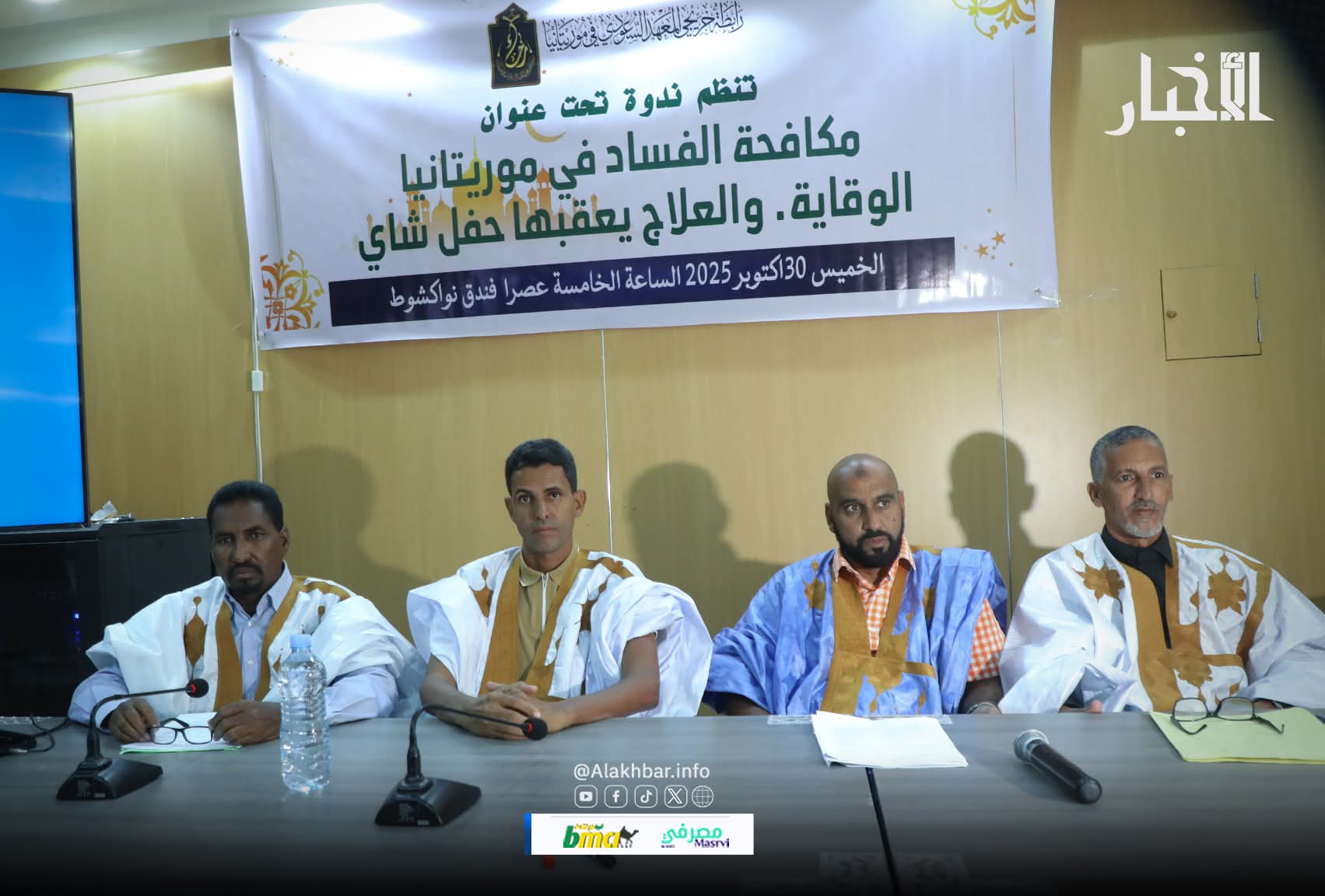الأخبار (نواكشوط) – نظمت رابطة خريجي المعهد السعودي بموريتانيا مساء اليوم الخميس ندوة بنواكشوط حول “مكافحة الفساد: الوقاية والعلاج” بمشاركة عدد من الأساتذة الباحثين وأعضاء الرابطة.