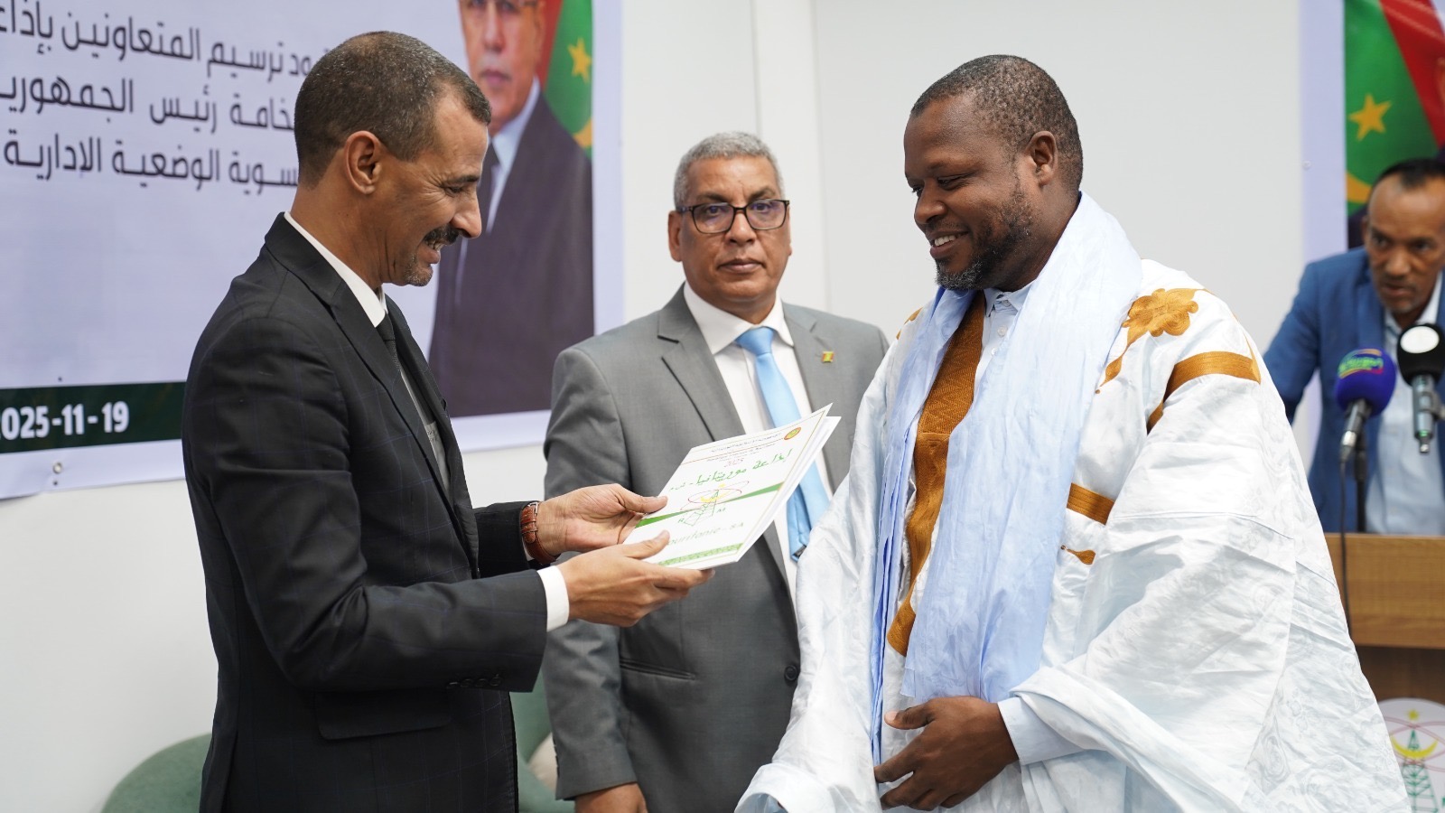 وخاطب الوزير الحضور “عمل كثر منكم داخل هذه المؤسسات، وتعاقبت الأنظمة، والدول، ولم تجد أي حل للملف” قبل أن يقرر ولد الغزواني تسويته.