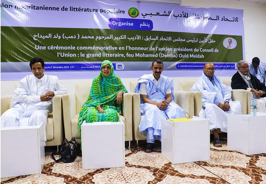 بدورها، قالت رئيسة الاتحاد الموريتاني للأدب الشعبي، خدي شيخنا، إن هذه التظاهرة تأتي لتأبين الراحل محمد ولد الميداح، مؤكدة أنه “كان ولا يزال حاضرا بما قدم من جهود كبيرة في المجال الثقافي”.