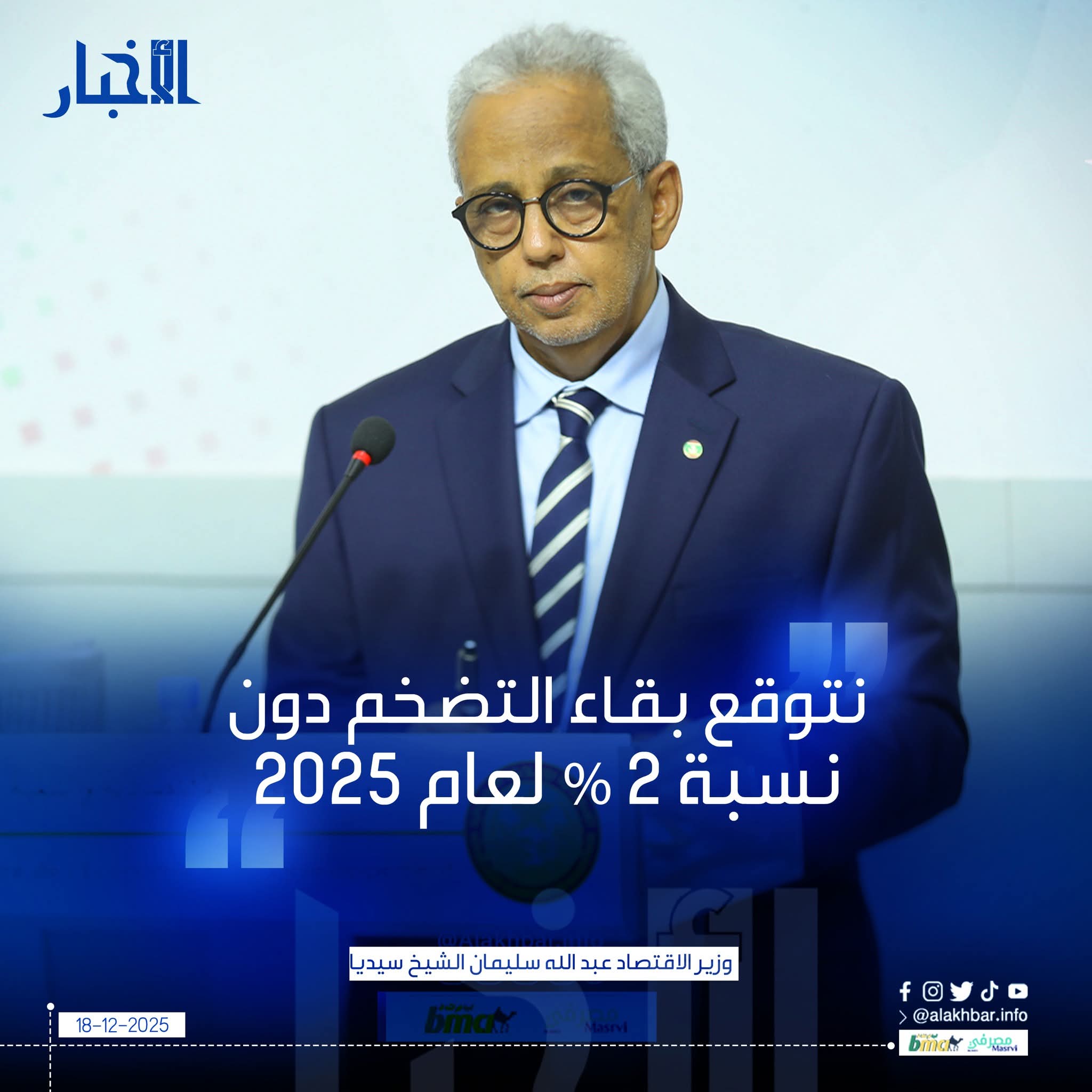 الأخبار(نواكشوط) – توقع وزير الشؤون الاقتصادية والتنمية عبد الله سليمان الشيخ سيديا أن يبقى التضخم لعام 2025 دون نسبة 2%، مشيرا إلى أن ذلك بسبب السياسات الاقتصادية الكلية، واستمرار البنك المركزي في امتصاص فائض السيولة.