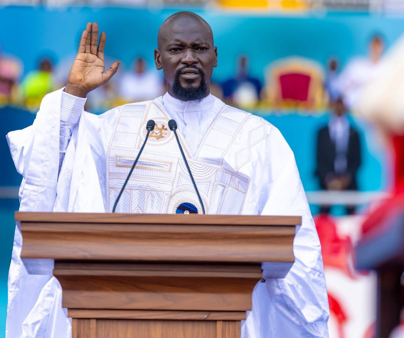 وحضر مراسم اتنصيب الجنرال البالغ 41 سنة، عدد من رؤساء الدول الإفريقية، بينهم الرئيس الموريتاني محمد ولد الغزواني، والرواندي بول كاغامي، والغامبي ٱداما بارو، والسنغالي بصيرو ديوماي فٌاي، والليبيري جوزيف بواكاي.