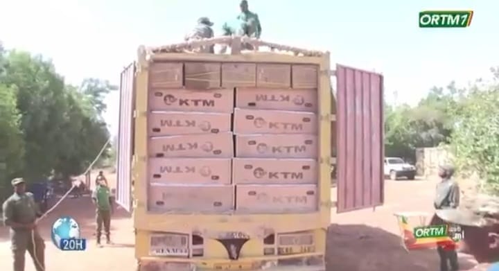 الأخبار (باماكو) - أعلن التلفزيون الرسمي المالي اليوم الاثنين، أن القوات المسلحة المالية صادرت شاحنتين محملتين بـ"دراجات نارية"، و"كميات من الوقود"، و"عدد من أجهزة الاتصال"، مضيفا أنهما انطلقتا من موريتانيا.