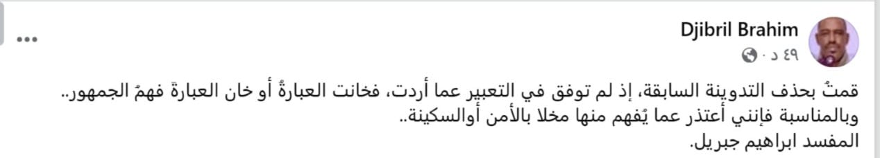 وعقب إطلاق سراحه، كتب ولد جبريل على صفحته في فيسبوك: "قمتُ بحذف التدوينة السابقة، إذ لم توفق في التعبير عما أردت، فخانت العبارةُ أو خان العبارةَ فهمُ الجمهور.. وبالمناسبة فإنني أعتذر عما يُفهم منها مخلا بالأمن أوالسكينة".