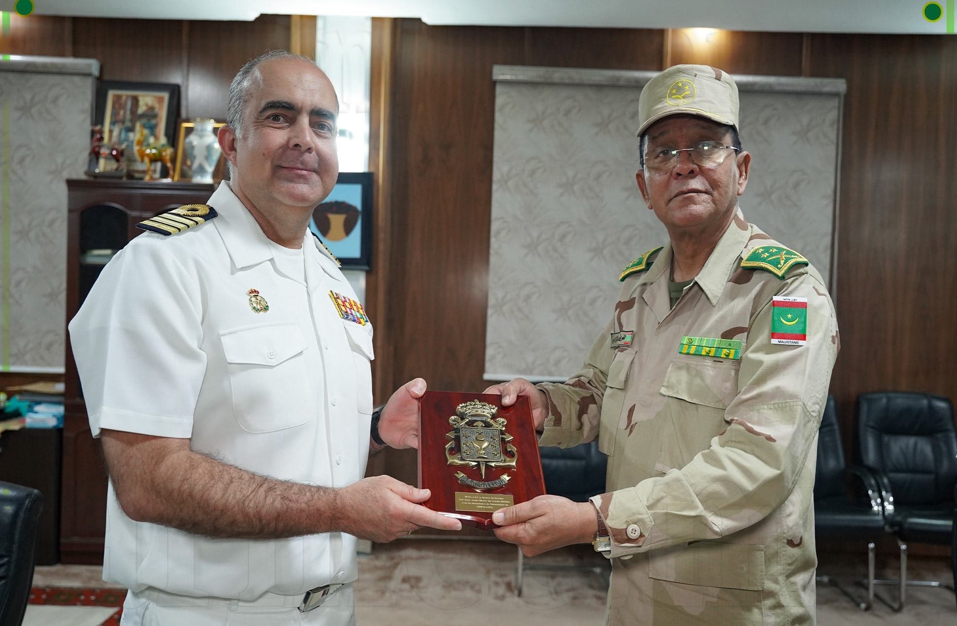 الأخبار (نواكشوط) – أجرى قائد الأركان العامة للجيوش بموريتانيا الفريق محمد فال الرايس، زوال اليوم الخميس بمكتبه في نواكشوط مباحثات مع قائد السفينة الحربية الإسبانية «GALICIA» العقيد البحري خوان خوسي بليزون إزكييردو.