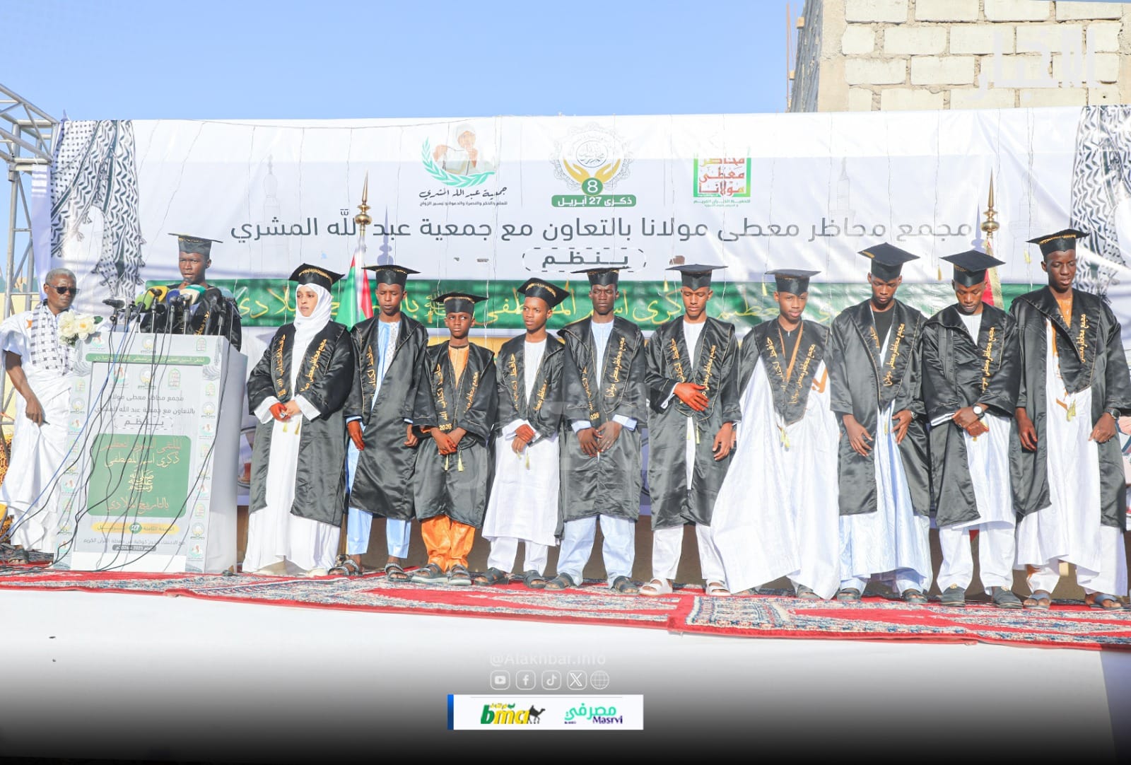 الأخبار (نواكشوط) - احتفى مجمع محاظر معطى مولانا اليوم الأحد بتخرج 11 حافظا وحافظة للقرآن الكريم، وذلك خلال افتتاح النسخة الـ8 من الملتقى السنوي لتعظيم ذكرى اسم المصطفى صلى الله عليه وسلم، والمنظم بالتعاون مع جمعية عبد الله المشري. وقال مدير مجمع المحاظر أحمد ولد سيدي في كلمة له إن تنظيم هذا الحدث يشكل فرصة للالتقاء على مائدة القرآن الكريم ومحبة خير البرية، من أجل الاستنارة بسيرته العطرة والنهل من معينها الصافي بما يزكي النفوس ويهذب السلوك ويقوي الصلة بالله. وأضاف ولد سيدي أن هذه الفعالية تشكل فرصة لتكريم وتشجيع حفاظ القرآن الكريم الذين هم أهل الله وخاصته، مؤكدا اعتزازهم باحتضان المجمع هذه النخبة من صفوة الحفاظ ومن علماء وفقهاء وأساتذة أجلاء. وأشاد بالدور الذي تضطلع به السلطات العمومية وما توليه من عناية لخدمة الإسلام والمسلمين وتعزيز مكانة المحاظر، وصون الهوية الدينية الوطنية، إضافة لدور وزارة الشؤون الإسلامية في رعاية المساجد ودعم المحاظر وتأطير العمل الديني. وعبر ولد سيدي عن أملهم في أن يشكل هذا الموسم لبنة في صرح إسلامي مبارك، وهدي نبوي شريف وفق تعبيره. من جهته أكد الأمين العام لوزارة الشؤون الإسلامية والتعليم الأصلي بيت الله أحمد لسود عمل الوزارة على تأطير الحقل الديني وتعزيز إسهاماته في ترسيخ السكينة الاجتماعية، وكذا نشر قيم الوسطية والاعتدال. وأوضح أن هذا الملتقى "يندرج ضمن الجهود الرامية إلى تحصين الأجيال الصاعدة من مختلف مظاهر الانحراف الفكري والسلوكي، وذلك عبر ترسيخ الصلة بالقرآن الكريم حفظا وتدبرا وعملا، إضافة لتعميق الوعي بالسيرة النبوية كنموذج متكامل لبناء الفرد والمجتمع". وعبر عن تثمين الوزارة لمثل هذه المبادرات، وكذا التزامها بمواصلة تقديم الدعم لها من أجل توسيع نطاقها، وكذا تعزيز الشراكة مع مختلف الفاعلين في المجال العلمي والدعوي بما يخدم الأهداف الوطنية في صيانة الثوابت وترسيخ القيم، وتحصين المجتمع.