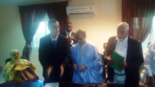 الأخبار(نواذيبو)- أشرف وزير الصيد والاقتصاد البحري رفقة السلطات الإدارية والأمنية ورؤساء اتحاديات الصيد والفاعلين في القطاع على توقيع اتفاقية بين المدير العام لصندوق التأمين الصحي ورئيس الاتحادية الوطنية للصيد في مباني ولاية نواذيبو.