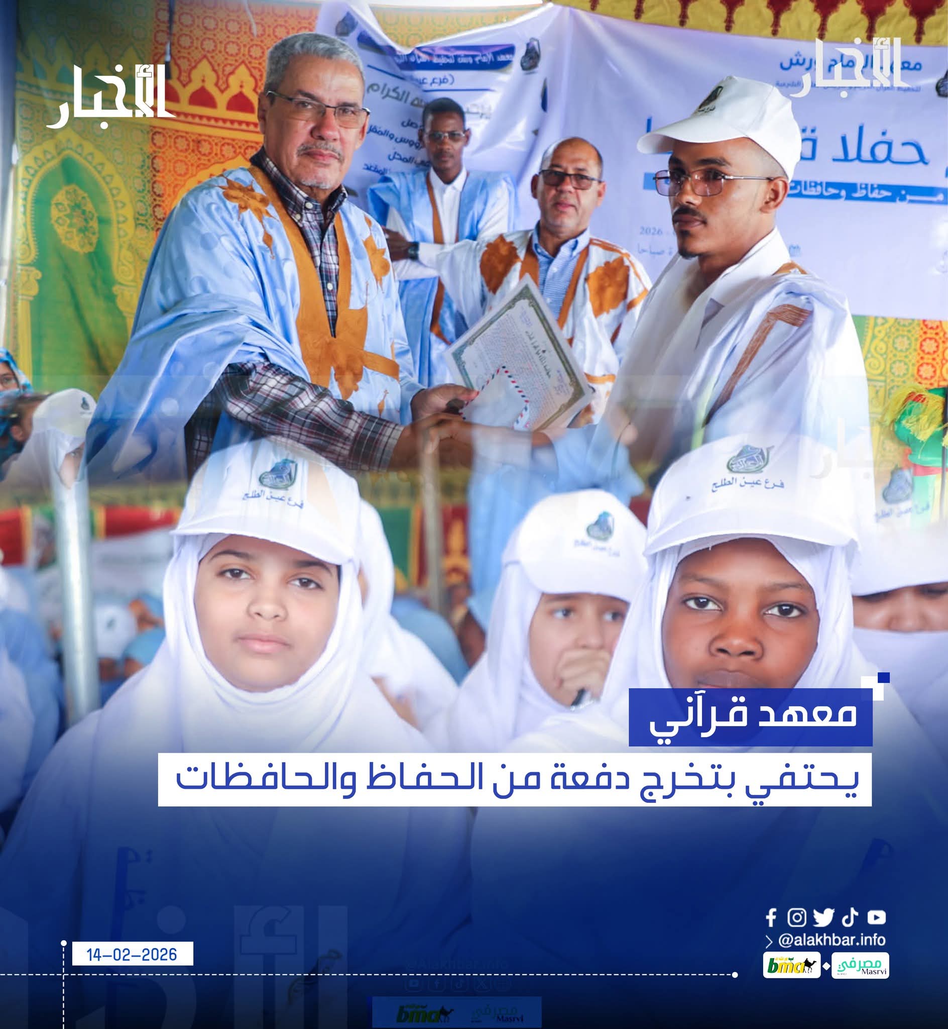 الأخبار(نواكشوط) - احتفى معهد الإمام ورش لتحفيظ القرآن الكريم وتدريس العلوم الشرعية اليوم السبت بتخرج دفعة من الحفاظ والحافظات، خلال حفل نظم بتيارت في ولاية نواكشوط الشمالية.